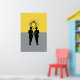Modern wall art "Astra Feminine Colorblock"  features two female form silhouettes with astral circle and laurel on trendy yellow & gray colorblock background