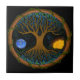 A cosmic Astral Tree of Life's limbs and roots branch outwards symbolising the interconnectedness or relation between all of creation. In the background, the Sun and Earth float in a sea of stars. Decorative line work represents layers of reality & experience. Vines wrap around the wooden frame 12 times symbolising the twelve months, astrology signs of the zodiac, and celestial bodies of our solar system; Sun, Moon, Mercury, Venus, Earth, Mars, Jupiter, Saturn, Neptune, Uranus, Pluto, Eris.