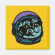 Put cats in space with introverts. The classic heavy breathing cat meme in an astronaut helmet. Black outline with pastel complementary colours: purple, green, and yellow.