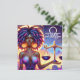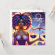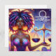 Horoscope Libra puzzle. Ai art depicting a beautiful African-American woman with colourful purple dreadlocks holding a scale with a Libra symbol above it.