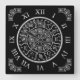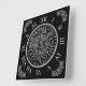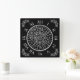 Beautiful black, silver and white wall clock depicted with the astrology signs inside a wheel.