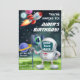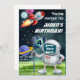 A customisable cartoon astronaut and space rocket children's birthday invite with a cute cartoon spaceman on an alien moon with a red and silver rocket ship. With a space in the helmet for your child's face! Easily personalised with the details of your birthday party and face, just change the text, or for greater control use the "customise it" button. All artwork copyright protected.