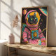 This maximalist print blasts you off with a pink-clad astronaut cat! A funky explosion of stars, planets, and nebulas creates a purrfectly colourful space adventure.