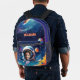 Need birthday party ideas for your boy? This spectacular photo personalized backpack with an astronaut and space theme, featuring an illustration of an astronaut in deep space with a photo template on the visor, floating among planets, is just the ticket. Celebrate your budding astronaut with this planets and deep space theme that will make him happy, if he is crazy about all things planets, rockets, space and astronaut suits. The perfect birthday gift for a boy or girl, or as a Christmas or back to school.