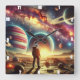 Astronaut Exploring Vibrant Galactic Scenery Square Wall Clock