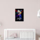 This digital space art features an astronaut hanging from balloons shaped as all nine planets of our solar system on a colourful nebula background with stars.