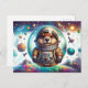 This vibrant postcard captures the spirit of adventure with a whimsical illustration of a groundhog astronaut adrift in the cosmic wonder of space. The groundhog, clad in a highly detailed, authentic-looking space suit complete with American flag patch, gazes out from its oversized helmet with curiosity and awe. The surrounding cosmos is alive with colour and activity; planets of various colours and sizes, a distant space shuttle, and a fantastical space station all contribute to the dynamic backdrop. Stars and galaxies twinkle in the distance, while celestial phenomena like comets, asteroids, and even a ringed planet add to the scene’s magical appeal. This postcard is perfect for inspiring wonder in all who receive it, evoking dreams of the final frontier and the thrill of exploration. It’s an excellent choice for science enthusiasts, dreamers, and anyone with a love for the charmingly extraordinary.