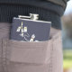 The flask itself is fine. It’s a cheap flask, obviously bought in bulk, however am prepared to overlook that. Given that it is a personalized item, I would have liked to have seen gift boxing instead of the generic packaging. Terrible printing, and/or quality. It’s a cheap, tacky vinyl. It is not cut straight and is also applied in a way that it is overhanging the bottom, causing the glue to catch on items and it will eventually roll and tear, damaging the wrap.
