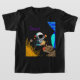 This astronaut in space for kids shirt was designed by a 7-year-old who loves planets, comets, and drawing brave space explorers. It features a child-sized astronaut holding a glowing planet, surrounded by stars, asteroids, and colourful space doodles — perfect for little dreamers who want to go to space one day.