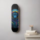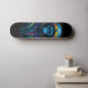 skateboard illustration of a monkey wearing headphones in neon style, black light, made by AI