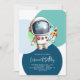 Astronaut Moon Rocket Blue 1st Birthday Invitation