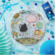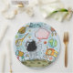 Astronaut on the moon boy's birthday party paper plates with astronaut, asteroids, moon rover, telescope planet, rocket ship extra terrestrial scene on the moon. Cute colourful cartoon style whimsical invitation suitable for a young boy or girl who loves outer space and science fiction themes.