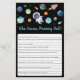 These adorable Who Knows Mummy Best Cards are a fun Baby Shower activity. Simply pass them around during the Baby Shower where guests will have fun answering questions about the Mum to be! The person with the most correct wins! The design features an adorable astronaut, rocket ship and colourful planets.