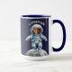 Get ready to blast off with this cool outer space mug for kids. This design is lets you place a photo of your child's face inside the astronaut helmet while highlighting their journey through time and space. Great for kids who love the stars, moon, and all things outer space.