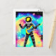 Astronaut playing electric guitar in space postcard
