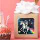 Astronaut Riding Unicorn in Space - Funny Science Square Stickers - Watercolor Art Stickers