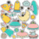 A graphic of astronaut clipart, Outer Space: astronaut holding balloon as a planet, a rocket, stars, UFO icon, Space satellite icon, Saturn planet, Spaceship, and others.