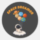 This adorable illustration features a smiling astronaut sitting on a fluffy cloud while holding colorful balloons shaped like planets from the solar system. The soft cartoon style and vibrant space colors create a playful and dreamy atmosphere that appeals to kids, space lovers, and science fans. Perfect for anyone who enjoys cute space art, astronomy themes, and whimsical cosmic illustrations.