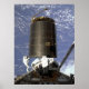 STS-49, the first flight of the Space Shuttle Orbiter Endeavour, lifted off from launch pad 39B on May 7, 1992 at 6:40 pm CDT. The STS-49 mission was the first U.S. orbital flight to feature 4 extravehicular activities (EVAs), and the first flight to involve 3 crew members working simultaneously outside of the spacecraft. The primary objective was the capture and redeployment of the INTELSAT VI (F-3), a communication satellite for the International Telecommunication Satellite organisation, which was stranded in an unuseable orbit since its launch aboard the Titan rocket in March 1990. In this onboard photo, astronauts Hieb, Akers, and Thuot have handholds on the satellite.