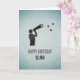 For star gazers and lovers of dark skies, space and the beauty of our universe. A backyard astronomer with a powerful telescope looks up into the night sky represented by a trio of twinkling stars. The masculine design has a galvanised metal style grey background with the graphic having a stamped and painted effect, to appeal to modern men and teenage boys. You can change the birthday greeting to suit other occasions for him, plus there's space for a message inside.