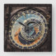 photography in black, blue, and orange of a historical mediaeval landmark of an old astronomical clock in prague in europe with astrology signs and roman numerals.