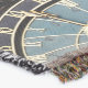 photography in black blue and orange. detailed color photography of a historical, medieval landmark, an old astronomical clock in prague in europe with blue, orange, and brown, astrology signs and roman numerals. photography in blacks blues and oranges.