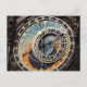 photography in black blue and orange. detailed colour photography of a historical, mediaeval landmark, an old astronomical clock in prague in europe with blue, orange, and brown, astrology signs and roman numerals. photography in blacks blues and oranges.