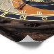 photography in black blue and orange. detailed colour photography of a historical, mediaeval landmark, an old astronomical clock in prague in europe with blue, orange, and brown, astrology signs and roman numerals. photography in blacks blues and oranges.