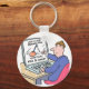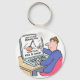 Whilst online banking at his home computer, a man gets offered a virtual pen and chain. Funny banking themed cartoon in colour.