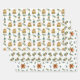 This pretty gift wrapping sheet set features a watercolor hygge theme, with three separate patterns in tones of blue green, blue, brown, and orange. One pattern is of a village house with Holiday trees. One pattern is bright orange flowers with blue green leaves. And the third pattern is coordinating orange berry Holly sprig with leaves. All patterns are placed on a white background. This set of papers coordinates nicely with A Hygge Christmas set of papers in our store. Mix and match!