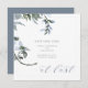 This chic design features a modern watercolor sprig of blue floral greenery and custom calligraphy.