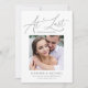 Share your exciting news with these simple and elegant engagement announcements! The phrase “At Last” is featured in a beautiful dark grey script with “We’re Engaged!” displayed just below. Personalise the announcements with your square photo, names, and engagement details to create a heartfelt keepsake. Perfect for mailing to family and friends, these stylish engagement cards provide a timeless way to celebrate the start of your new chapter together.