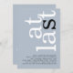 At Last QR Code Dusty Blue Engagement Party Announcement and Invitation. A modern typographical design, with At Last in large typography rotated and to the right hand side at the top, in white with black for the letter "s" on a background of pale dusty blue. The background colour can be changed on each side if you wish via Customise further. This version of the invitation is with parties in mind taking place in a hotel or restaurant (or any venue with a website), replace the QR code on the back with a QR code to their website to make it convenient for guests to find directions etc. You can create QR codes for free online. Search “QR code creator” and lots of options come up to create for free. You can also delete the QR code and text on the back if not required via customise further.