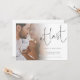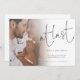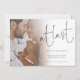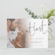 At Last Script Photo Engagement Announcement . A minimalist design with a touch of humour to let everyone know your happy news! Simply replace the sample photo with your own favourite. A gradient overlay layer is on top of your photo so it fades out as it reaches the centre with the text partially overlaid on top. At Last is in a modern set script and easily personalise the rest of the text.