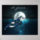at peace ~ Psychedelic,Trippy Orca Whale with the Full Moon Poster