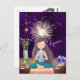 This beautiful postcard features a beautiful brunette girl meditating on a yoga mat surrounded by crystals, candles and lucky bamboo in a beautiful room with a deep purple wall and tile floor and golden artwork. Text states "at peace..." but can be changed to feature a name!