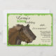 A masculine invitation featuring three stallions at a race framed with a green grunge border.