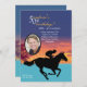 Make it a special occasion by inviting guests with this unique invitation. The beautiful background features a horse and jockey silhouette racing across the card. Just add your favourite photo to make it yours. The card is easy to customise with your wording, font, font colour and choice of six paper types.