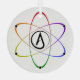 The Atheist Atom Symbol represents science, atheism, and the pursuit of knowledge and truth. The rainbow colors represent respect and acceptance for human diversity and LGBTQIA people.