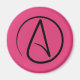 Atheist symbol: black on fuchsia magnet