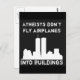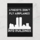 Picture of the world trade centre twin towers before the attack on september eleventh (911 nine eleven 9 11) with the caption "atheists don't fly aeroplanes into buildings. On september eleventh, the world trade centre was ruthlessly destroyed. Not by a government or a mad scientist or even someone with financial motivations. It was destroyed by a fundamentalist religious group. Nine Eleven was a faith based initiative. Fundamentalist islamic muslims murdered thousands of american citizens in cold blood in the name of god. Funny then that atheists are the nations least trusted minority. Especially so when considering that atheists don't fly aeroplanes into buildings.