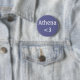 A dark powder blue "Athena heart" badge. Athena was the ancient Greek goodess of wisdom, crafts and war and was the patron goddess of several Greek cities, including Athens.