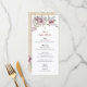 Mauve florals and leaves accent this menu with a natural wooden back. A simple cross is placed at the top.