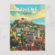 Athens retro vector travel design. The city is still dominated by 5th-century BC landmarks, including the Acropolis, a hilltop citadel topped with ancient buildings like the colonnaded Parthenon temple.