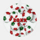 This festive soccer themed ornament is printed on the front and back with the image of a cluster of varied size red, green and white soccer balls - customise with the athlete's name on the front and commemorative year on the back - by katz_d_zynes