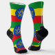 Show your support for Ethiopia with these athletic crew socks featuring the flag of Ethiopia. The bold green, yellow, and red stripes, along with the blue circle and star in the centre, represent Ethiopia's vibrant heritage and unity. Whether you're hitting the gym, playing sports, or just enjoying an active day, these socks combine style and function, ensuring you perform at your best while displaying your Ethiopian pride.