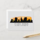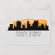 Stylish postcard features Atlanta Georgia city skyline silhouette with sunset watercolor splash and latitude & longitude map coordinates