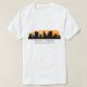 T-shirt design features Atlanta Georgia city skyline silhouette with sunset watercolor splash and latitude & longitude map coordinates