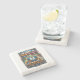 The coasters are gorgeous, a quality feel and heavy weight. They look like a precious archeological find. A rustic stone juxtaposed with a modern floral black and white print. I like the way the print goes slightly imperfect on the cut stone edges giving them a kind-of natural beauty.