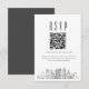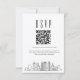 A minimal wedding rsvp QR code card featuring a stylised skyline representing the city of Atlanta. Replace the QR code with one featuring a link to your website to help make responding to your wedding event easier for your future guests.